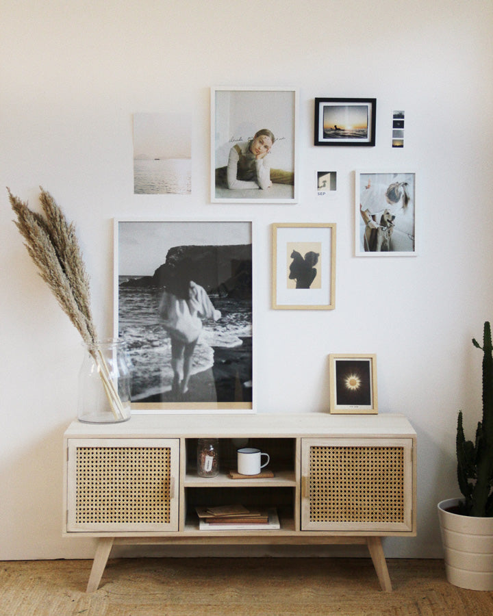 Es importante que tus cuadros estén en armonía con la decoración. Cuando coloques un cuadro encima de un mueble, deja aproximadamente entre 15 y 30 cm de distancia entre el mueble y el cuadro.